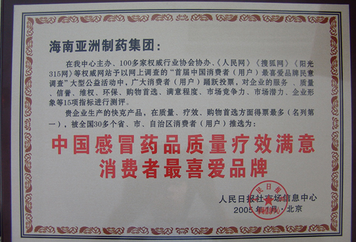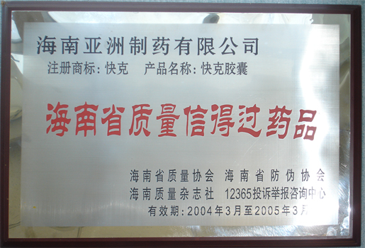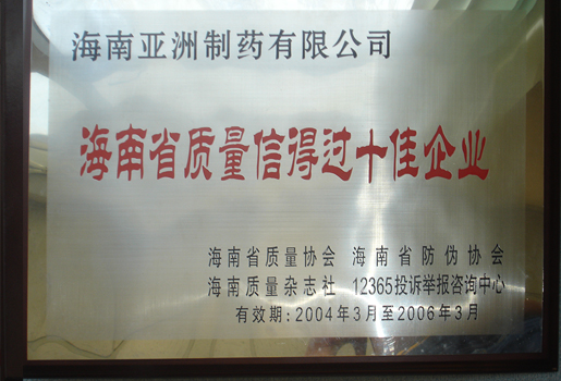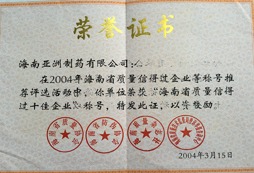 04年海南省質(zhì)量信得過十佳企業(yè)