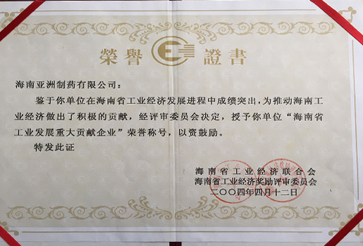04年海南省工業(yè)發(fā)展重大貢獻企業(yè)